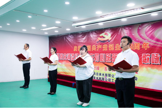 一百年風雨歷程,一百年崢嶸歲月。為重溫黨的光輝歷程,喜迎中國共產(chǎn)黨百年華誕,5月26日,市水務(wù)集團自來水有限公司舉行“重溫黨史誦讀經(jīng)典、不忘初心砥礪前行”誦讀、歌詠比賽。公司員工相聚一堂,用誦讀、歌唱的方式,讀黨史、念黨恩、跟黨走,上了一堂深刻的紅色黨史教育課。