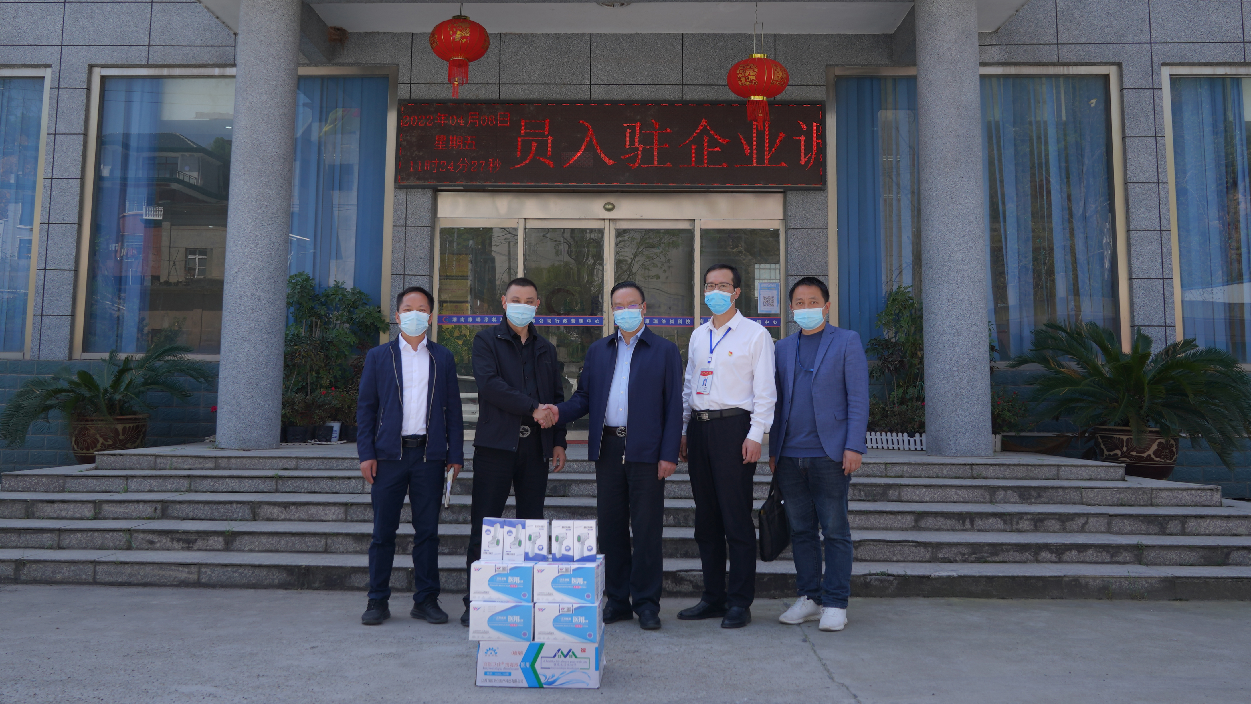 4月8日,懷化市水務(wù)投資集團(tuán)有限公司黨委書記、董事長楊秀和、市幫扶企業(yè)辦康瑞涂料公司特派員申湘平一行到市重點(diǎn)工業(yè)企業(yè)集團(tuán)幫扶對象——湖南康瑞涂料科技有限公司捐贈防疫物資,調(diào)研復(fù)工復(fù)產(chǎn)和企業(yè)發(fā)展工作。
