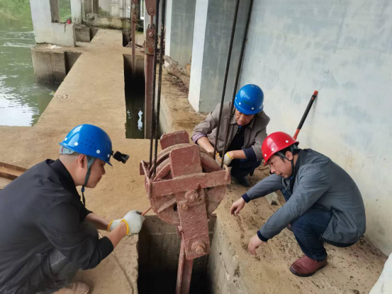 (圖二:運(yùn)行班組人員對(duì)閘門進(jìn)行檢查并泄洪)